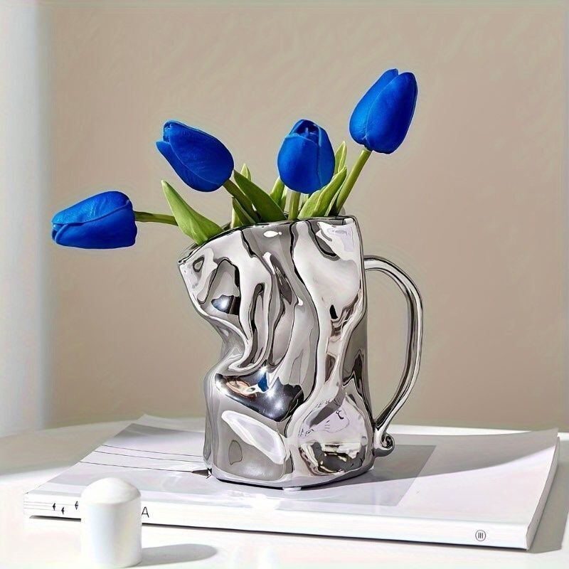 花瓶 花びん セラミック おしゃれ 曲がっているコップ シルバー シンプル ユニーク インテリア雑貨 花器 生け花 装飾 玄関 リビング ダイニング ギフト プレゼント 寝室 キッチン | shirokuro@生活を豊かに