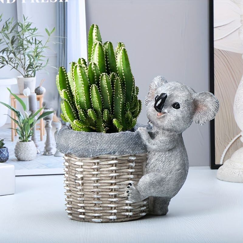 おしゃれでキュートなコアラがカゴにぶら下がった鉢植えプランターです!