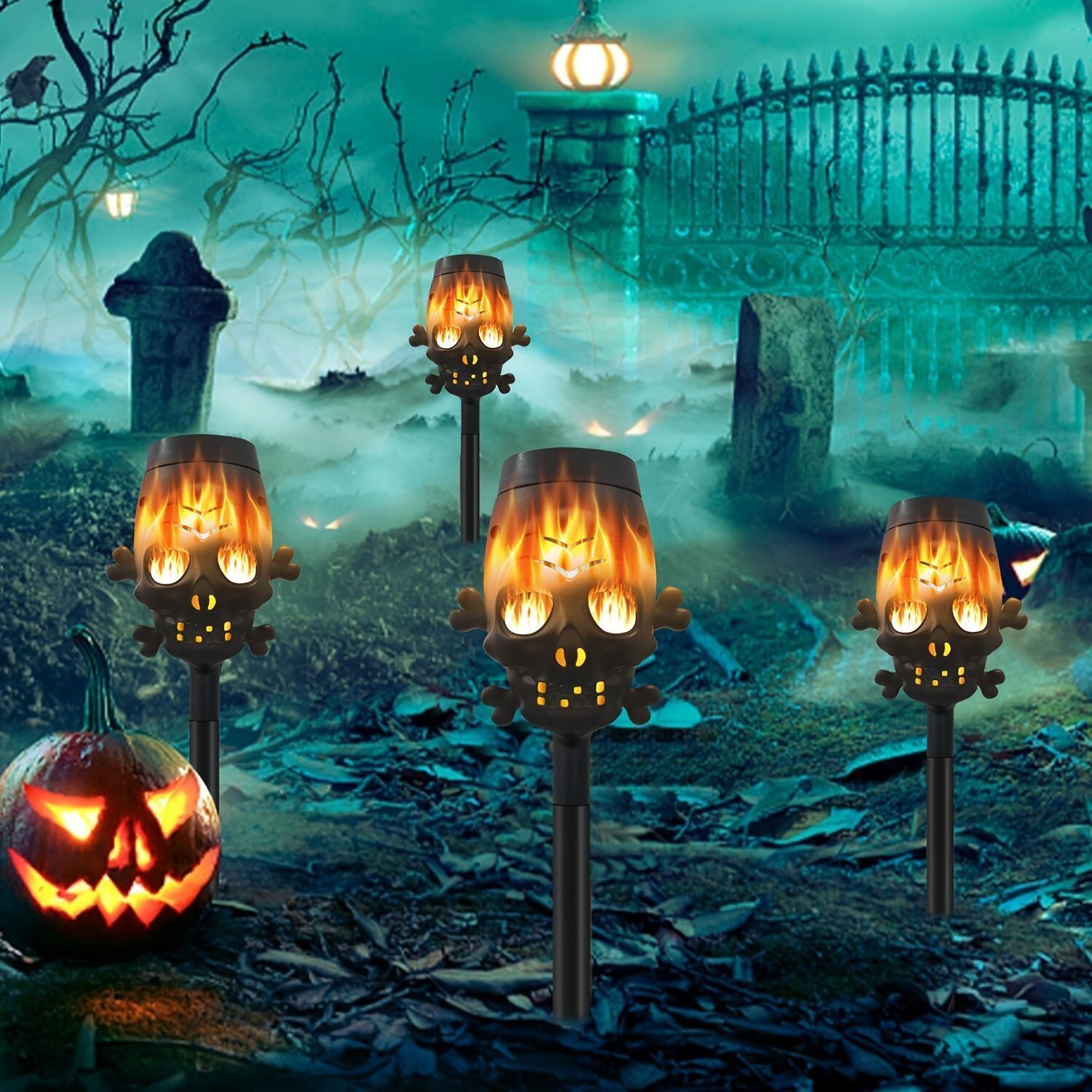 ソーラーライト ガーデンライト ガーデンオーナメント ガイコツ ドクロ ハロウィン装飾 ホラー 1個 ガーデニング お庭 玄関ライト 園芸装飾 インテリア オシャレ 防水 ギフト プレゼント 贈り物 プラスチック ガーデンピック ガーデンステーク | shirokuro@生活を豊かに