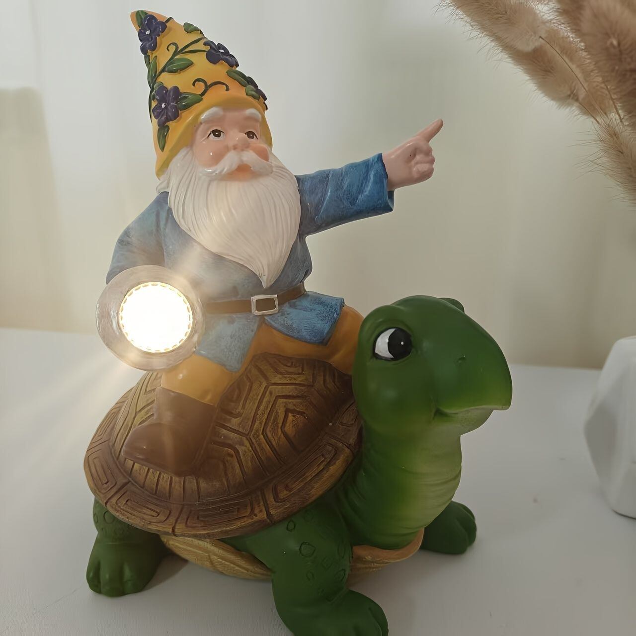 ソーラーライト ガーデンライト ガーデンオーナメント カメの上に乗っている小人 庭オブジェ 置物 癒しグッズ ガーデニング お庭 玄関ライト 園芸装飾 オシャレ ギフト プレゼント 樹脂 | shirokuro@生活を豊かに