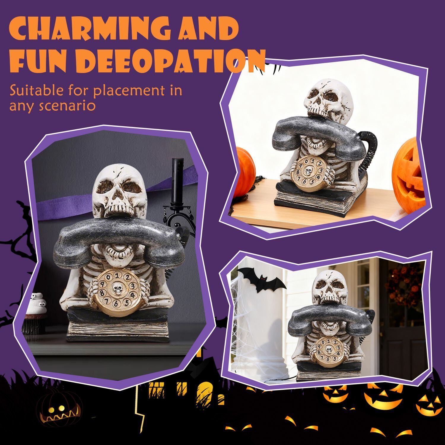 ユニークなガイコツ型の受話器オブジェは、ハロウィーンや日常のインテリアとしても大活躍のアイテムです!