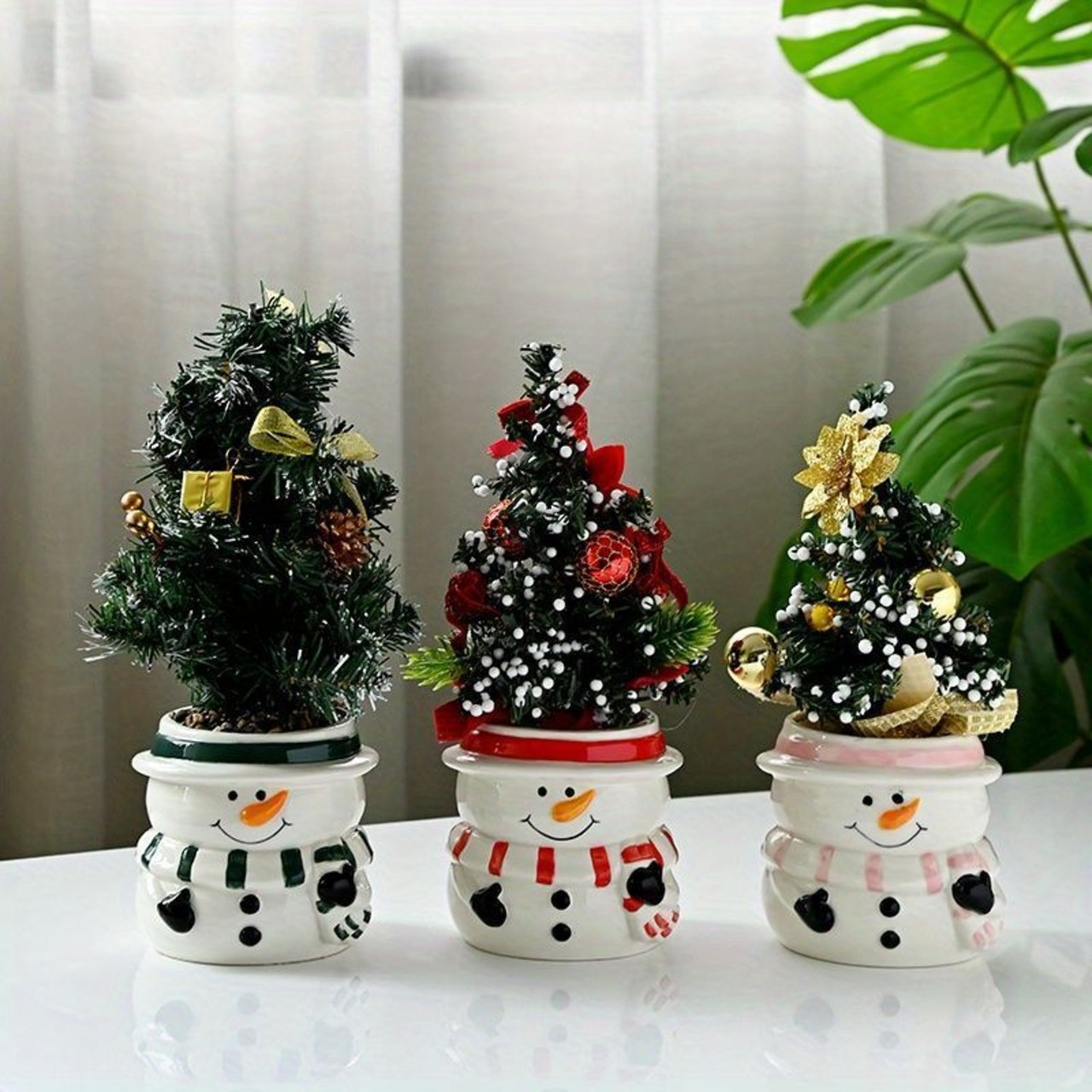 クリスマス オブジェ 置物 雪だるま鉢のツリー クリスマスツリー 緑 赤 ピンク 3種類 ガーデンオーナメント インテリア 可愛い インテリア雑貨 室内 寝室 玄関 庭 ガーデニング プレゼント ギフト セラミック クリスマス装飾 | shirokuro@生活を豊かに